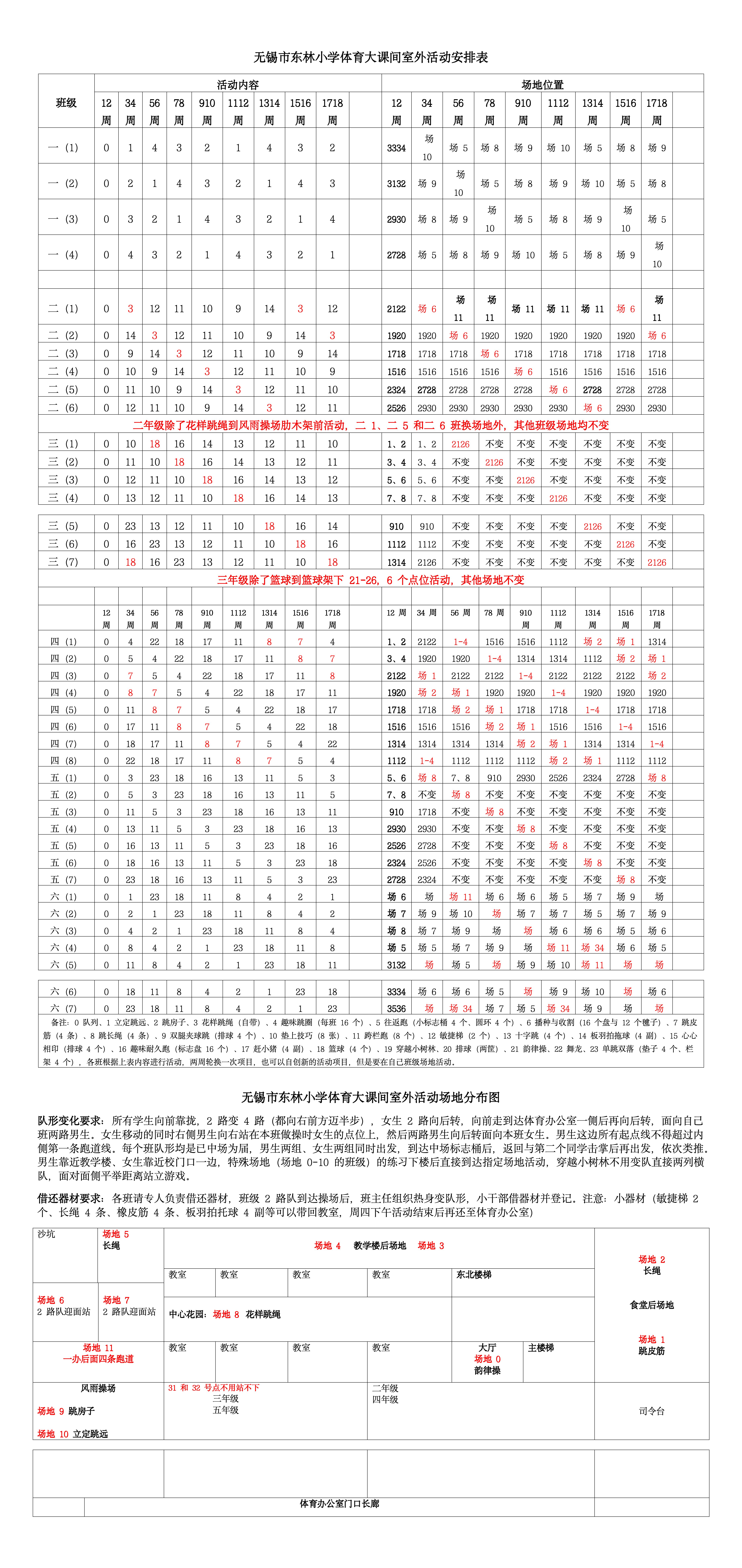 无锡市东林小学体育大课间室外活动安排表